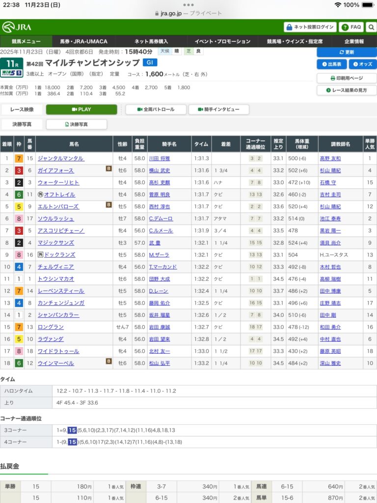 第42回マイルチャンピオンシップ(G1)を振り返って