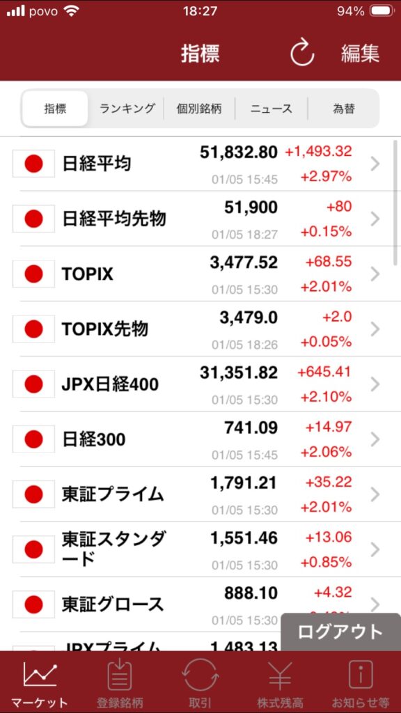 株の話ね。東京証券取引所で2026年度最初の商いが行われたけど、幸先の良いスタートを切りましたね。昨日のアメリカ市場の株が上がった影響もあり、シカゴの日経先物も高かったので今日は上がるだろうとは思っていたが、最終的に去年の最後の商いから1,493円32銭高く取引を終えました。